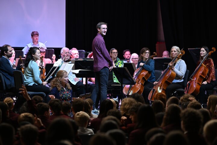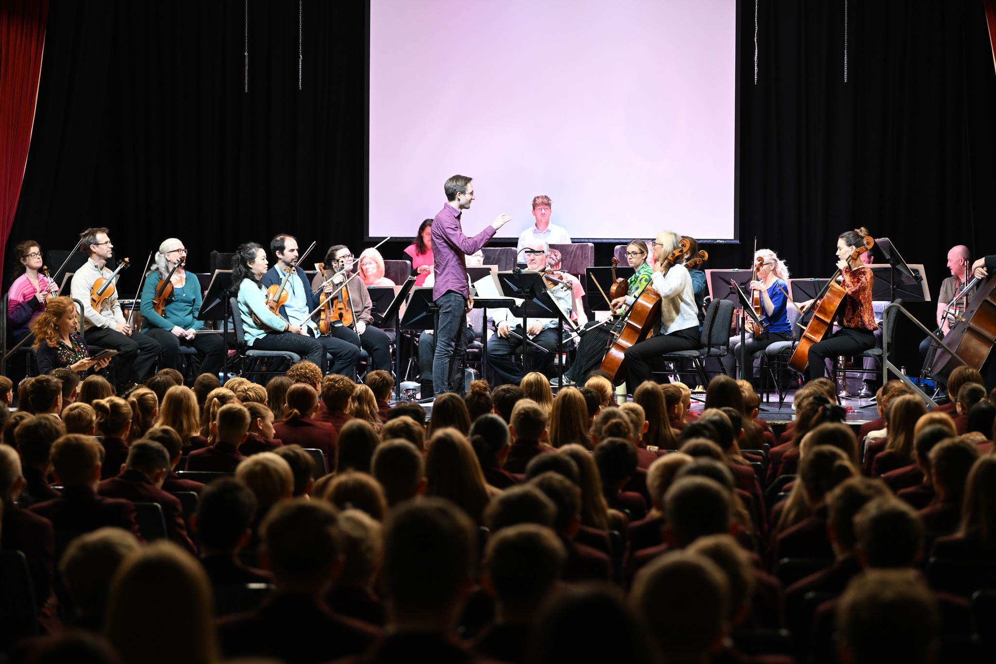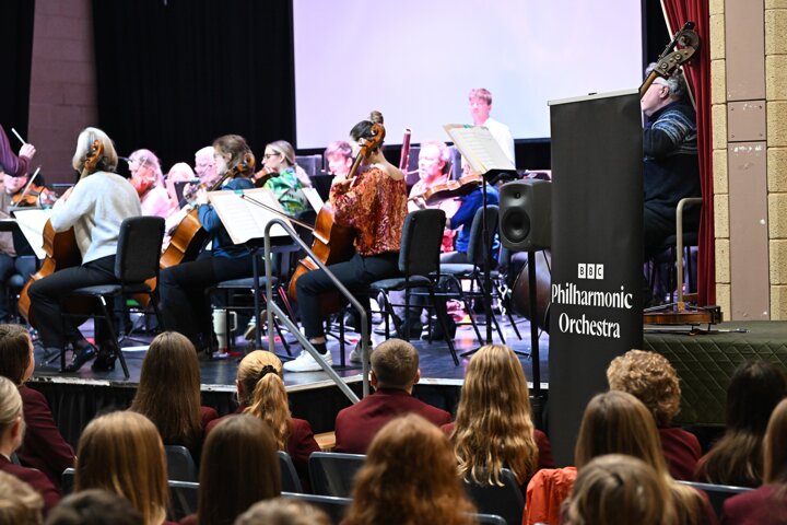 Woodhey High School was filled with the sound of music on Thursday 2nd October as the BBC Philharmonic Orchestra paid a special visit for a full day of performances. The orchestra, renowned for its world-class musicianship, delivered three electrifying concerts throughout the day — including one tailored for pupils from local primary schools. Audiences were treated to a dynamic programme ranging from classical masterpieces such as Bach’s Toccata and Fugue and Grieg’s Hall of the Mountain King — familiar to many from the Alton Towers advert — to the Latin rhythms of Mambo from West Side Story. The orchestra also brought a modern twist with music from a popular video game (Plants vs Zombies), while taking time to explain the roles of different instruments and the techniques behind their performance, offering students a rare and inspiring insight into the world of orchestral music.