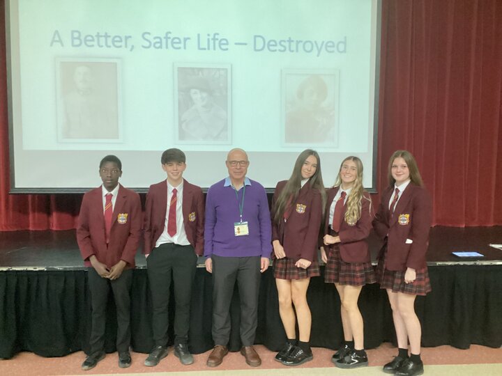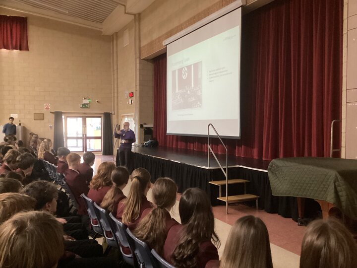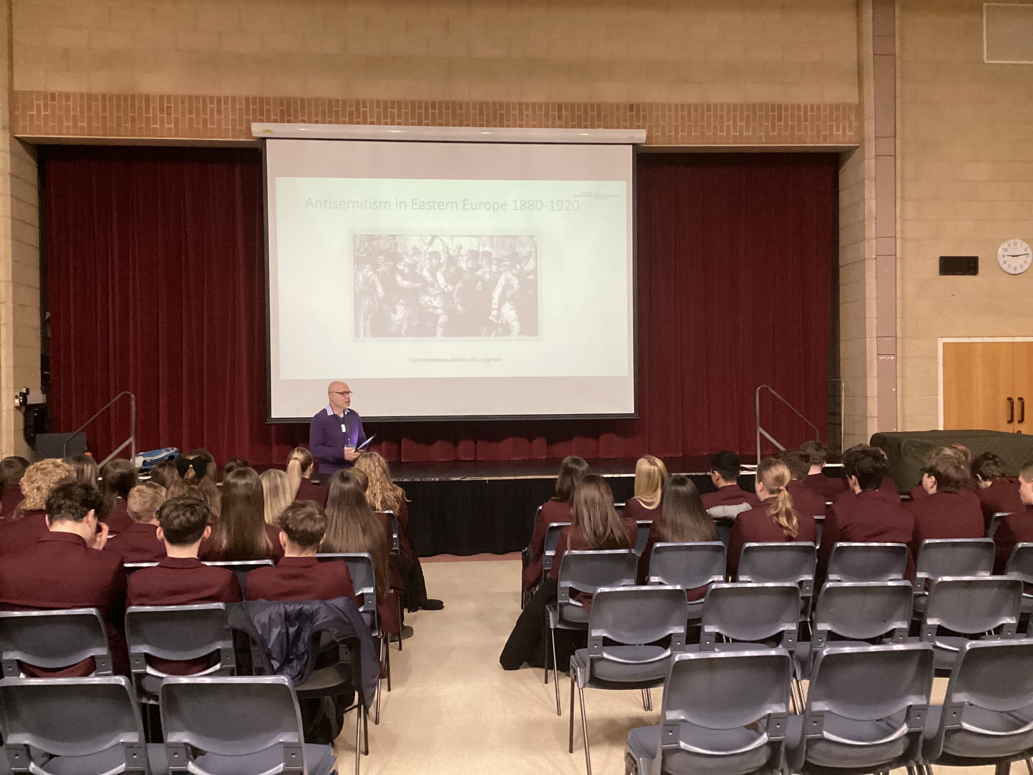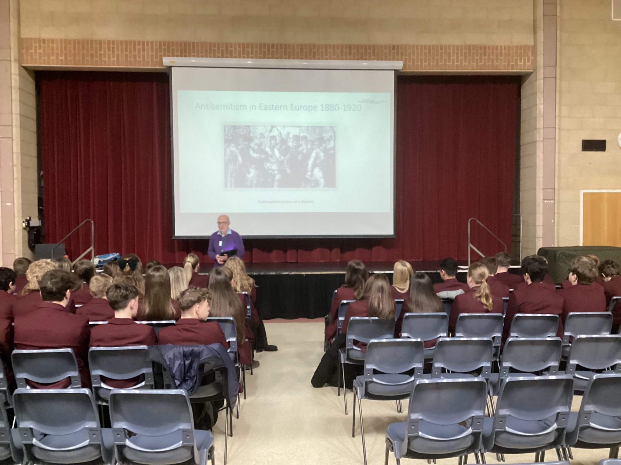 Today, our Year 9 students heard from Martin Hyman from the Northern Holocaust Education Group (NHEG), who spent two hours sharing his family’s experiences of the Holocaust. The NHEG works with schools to keep the stories of those affected by the Holocaust alive, helping young people understand its impact on real people and families. Martin spoke movingly about his mother, Ilse, and their experiences in Lviv, giving students a powerful insight into what life was like during that time. His talk formed part of our ongoing commitment to Holocaust education, ensuring students continue to engage with these histories in a meaningful and personal way.